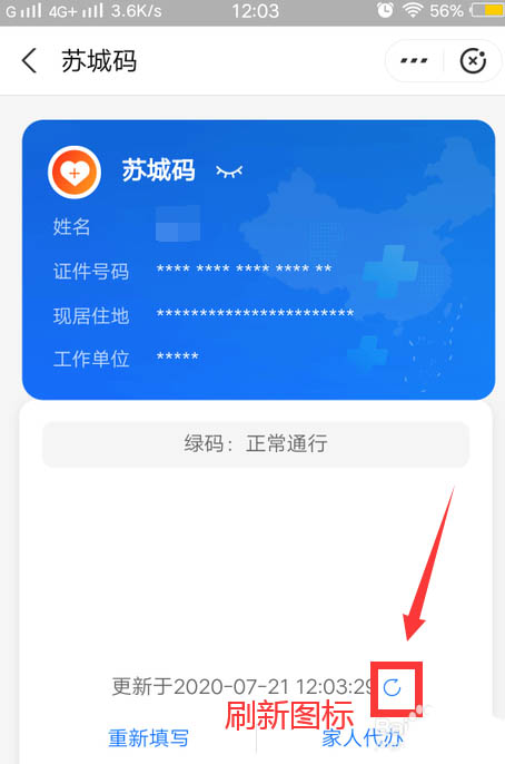 进入后如果发现白屏不显示健康码,点击右侧一个刷新小图标。