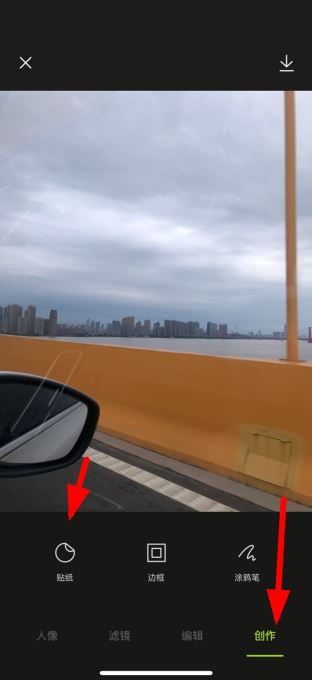 打开醒图app,编辑图片,选择创作,进入就可以看到贴纸功能