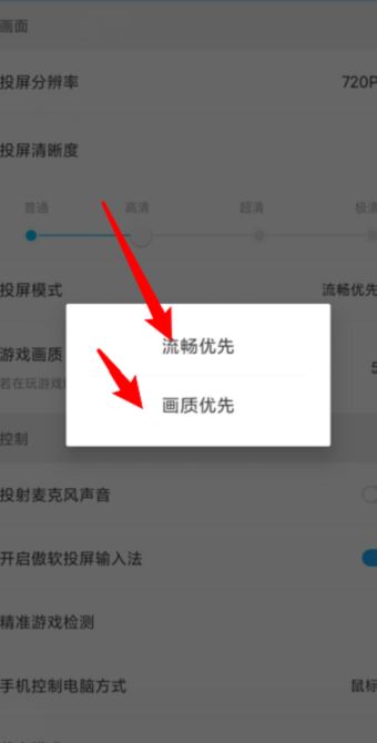 第五步:点击之后,弹出窗口,在这里就可以设置投屏模式(如图所示)。