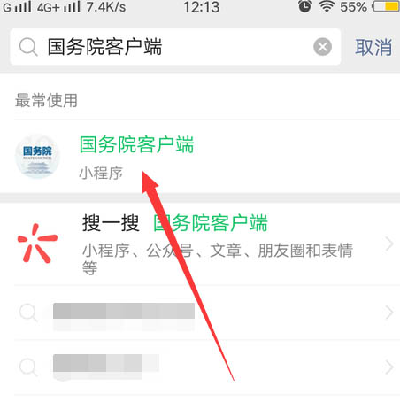 1、打开微信,搜索国务院客户端微信小程序。