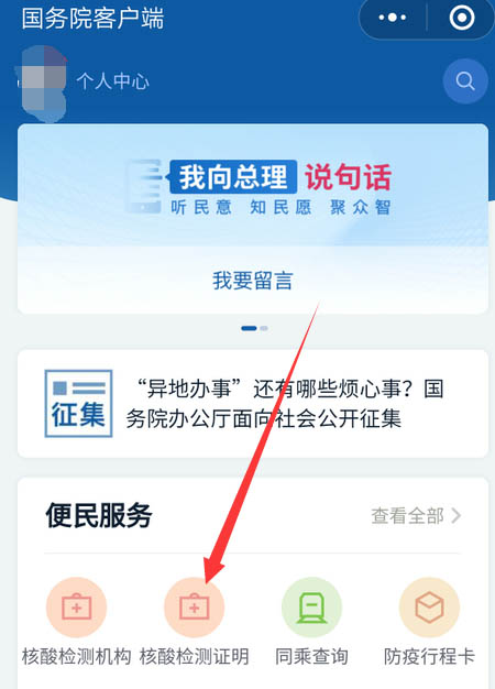 2、进入小程序后,在首页里,点击核酸检测证明。