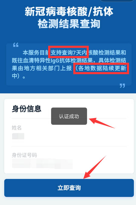 5、认证成功后,点击下方的立即查询。