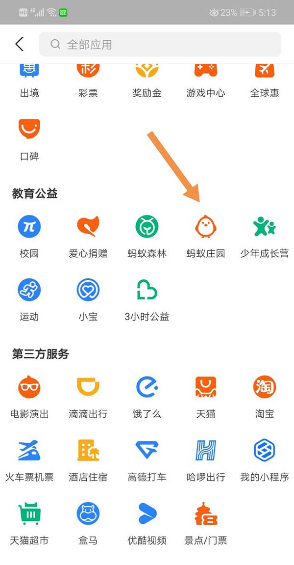 1、打开支付宝,点击“蚂蚁庄园”。