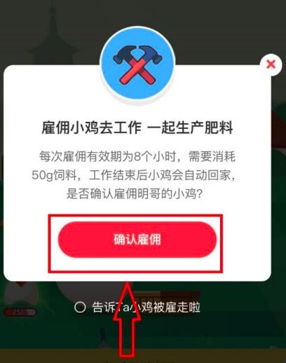 2、点击之后在底部会弹出一个页面,然后点击雇佣小鸡