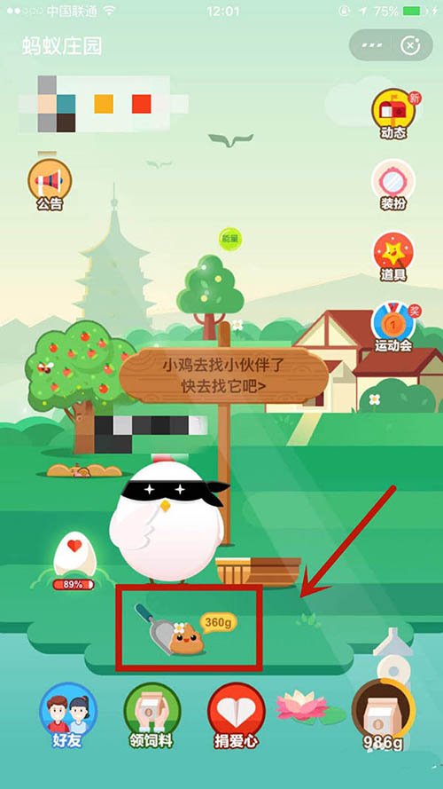 3、当小鸡便便满360g的时候,点击收取。