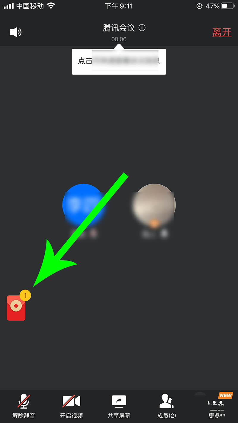1、在会议室界面点击红包图标,即可参与抢红包。