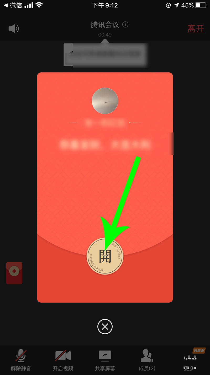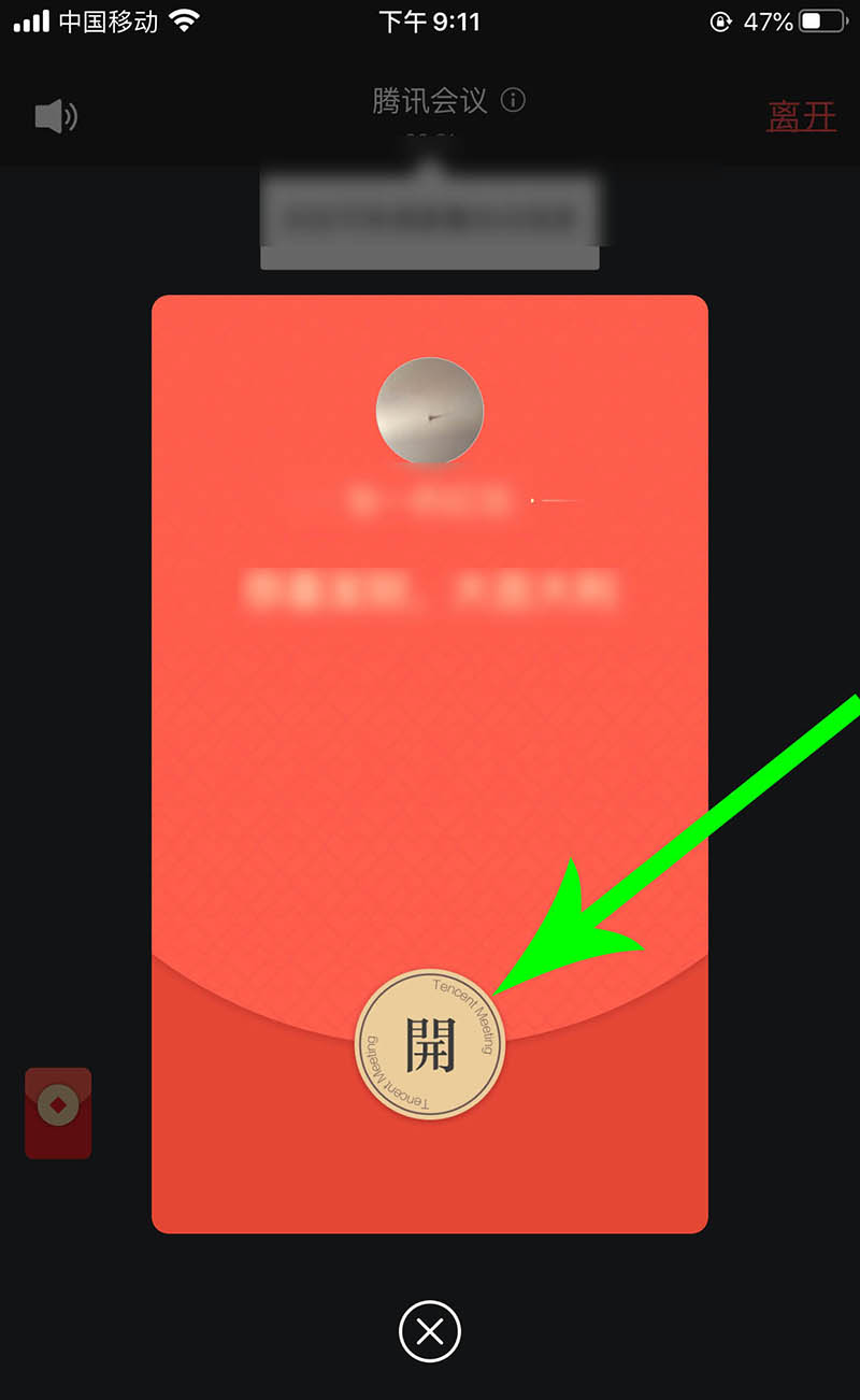 他人在腾讯会议会议室内发红包以后,就要迅速点击画面中的红包图标,下手慢了就没有红包了,刚刚介绍了腾讯会议怎么发红包,现在我们就来看看怎么抢红包。