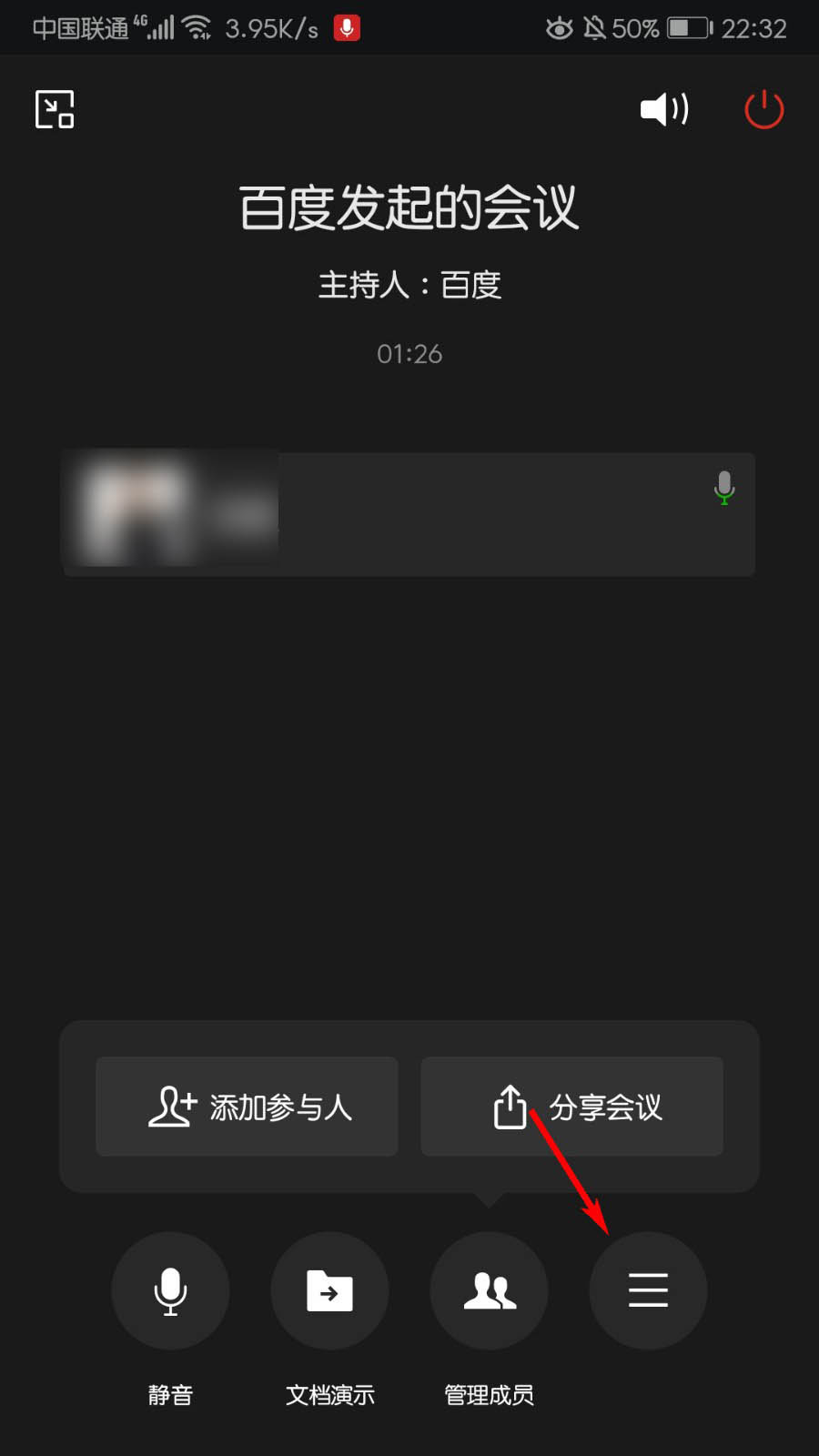 1、进入会议,点击更多;