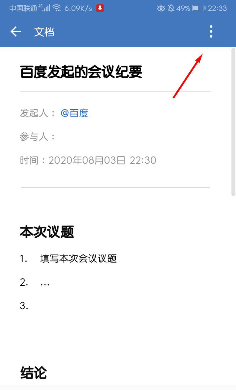 3、进入会议纪要界面,点击右上角按钮;