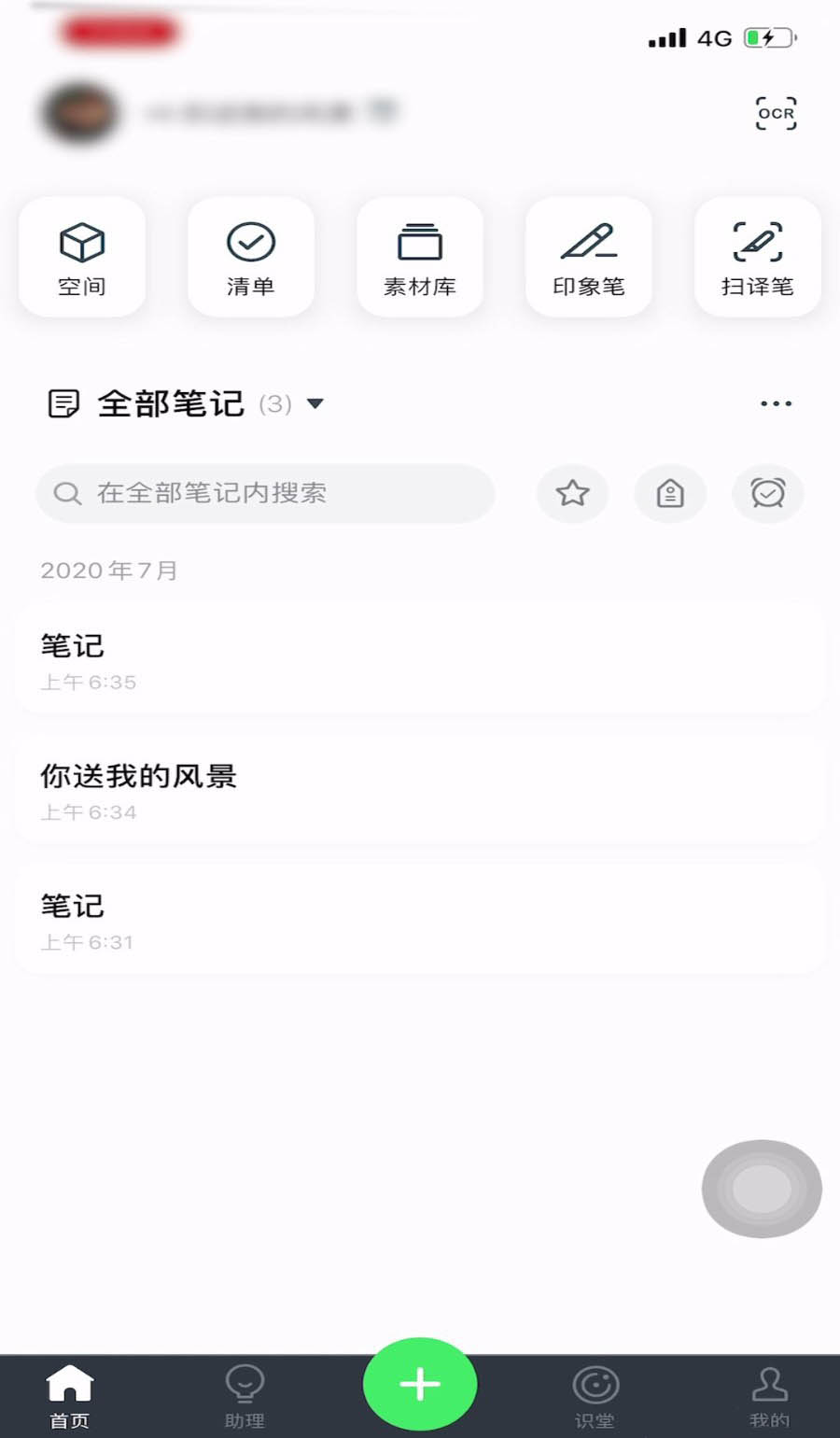 1、首先打开手机上面的印象笔记软件。