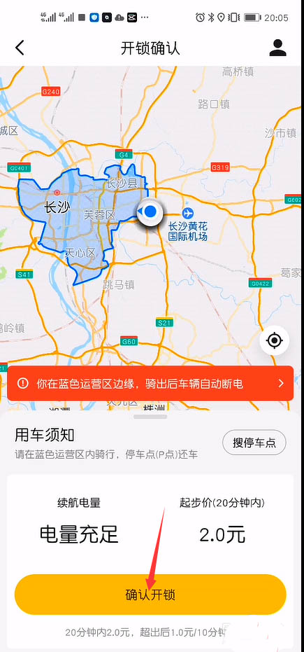 4、如果该电车电量充足话,是可以骑行的,如果电量不足是无法开锁骑行的。点击底部的“确认开锁”按钮。