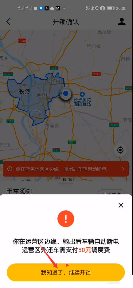 5、接下来,会弹出骑电车的注意事项,我们点击“我知道了,继续开锁”按钮。