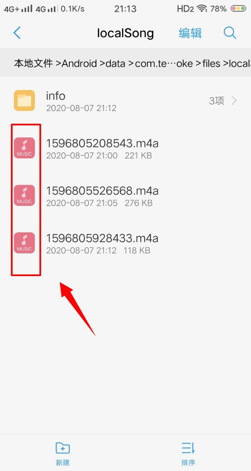 5、进入后,我们依次点击【Android/data/com.tencent.karaoke/files/localSong】。