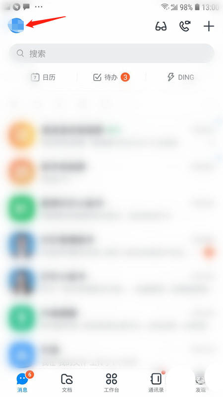 1、首先打开钉钉App,点击左上角的头像;