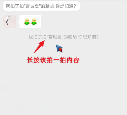 3、出现拍一拍消息后,在2分钟内,如果需要撤回,长按下方的拍一拍内容。