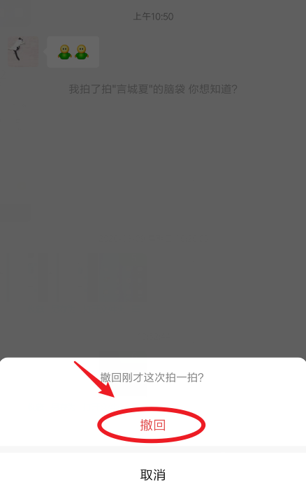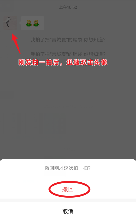 5、如果是刚发了拍一拍需要立即撤回,也可以再次双击对方的头像,点击下方的撤回。这种方法只针对刚发了拍一拍消息的情况,如果时间过长,不能通过双击头像撤回。