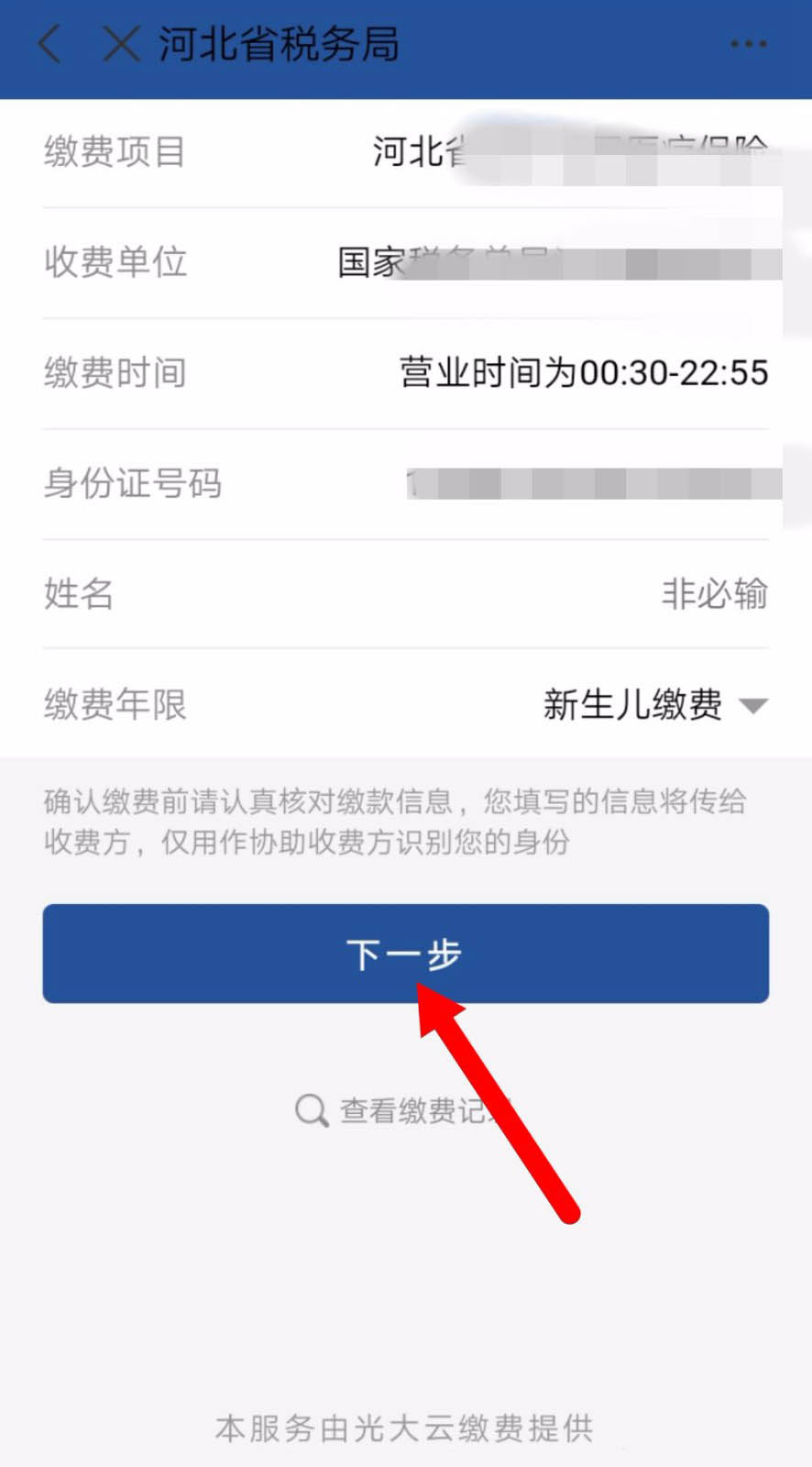5、核对缴费信息,点击“下一步”完成缴费就可以了。