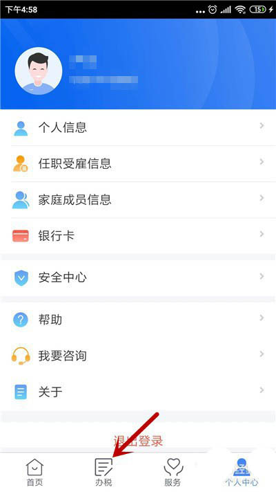 1、登陆个人所得税账号,再点击底部【办税】。