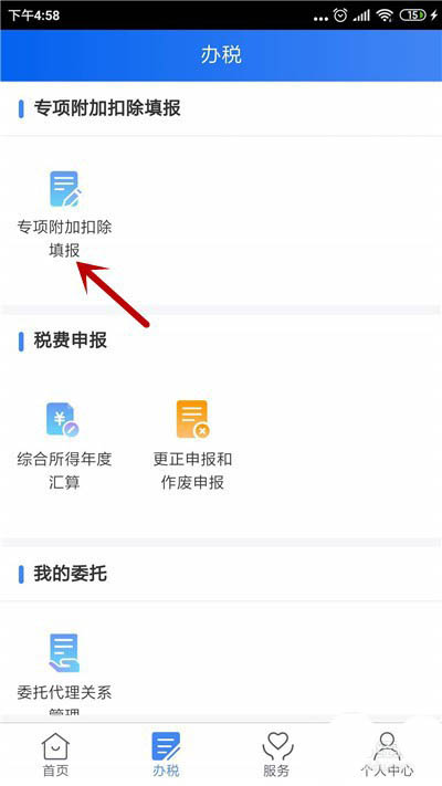 2、再点击【专项附加填报】选项,如图所示。