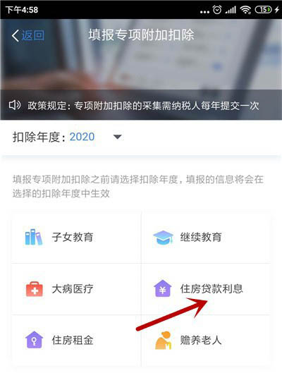 3、选择好扣除年度之后,点击【个人贷款利息】。