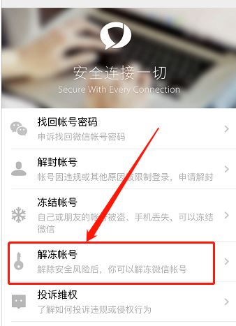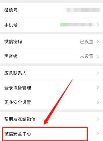 点击微信安全中心
