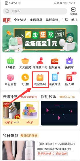 第二;点击首页在活动界面点击【签到领现金】选项按钮。