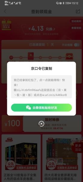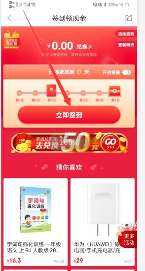 第三:点击中间的【立即签到领现金】按钮获得签到奖励。