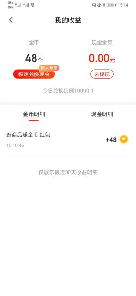 第六:点击【金币】进入【我的收益】点击【去提现】操作完成。