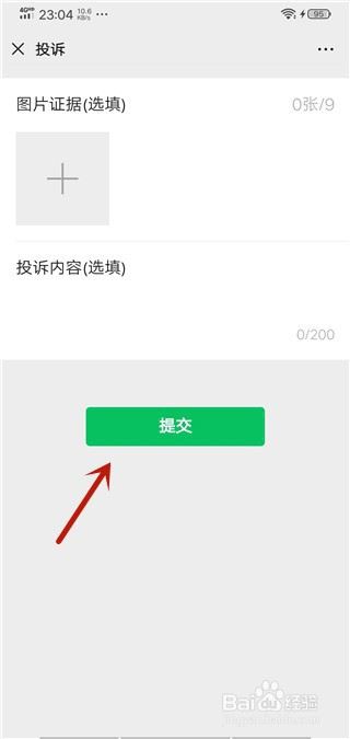 6、添加图片证据和文字内容,点击【提交】按钮,就可以投诉成功。