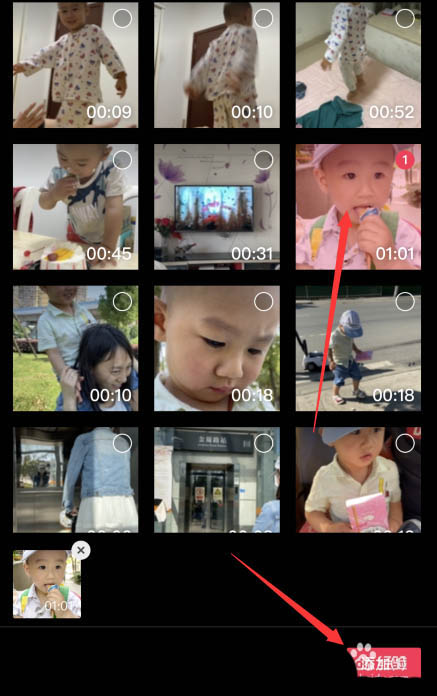 3、选择需要制作短视频的素材