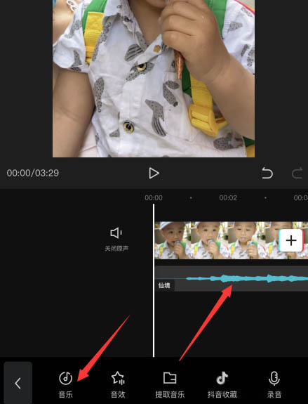 4、添加音频,并选中音频
