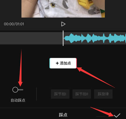 6、根据音频节奏或旋律设置点,以踩点为参考,然后微调音频或视频使音频画质同步,更多高级教程请看下方教程