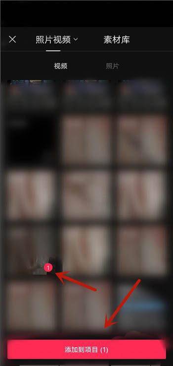 2、然后里面选择一个视频,点击【添加到项目】按钮。