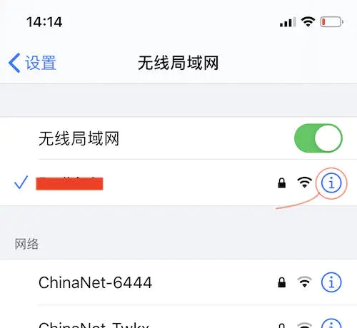 1、打开设置- 无线局域网 - 已连接的WIFI - 点击最右侧的“i”标识