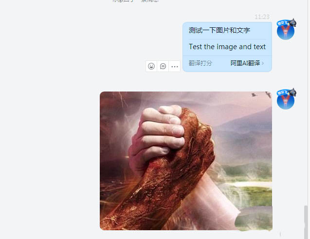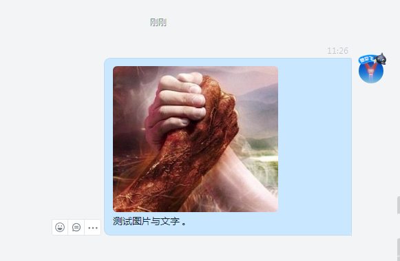 2、点击发送后,可以看到文字与图片分开了两条信息。