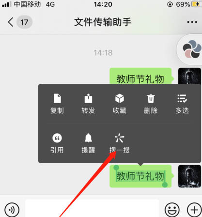 3、选择某一句对话,现【搜一搜】点击
