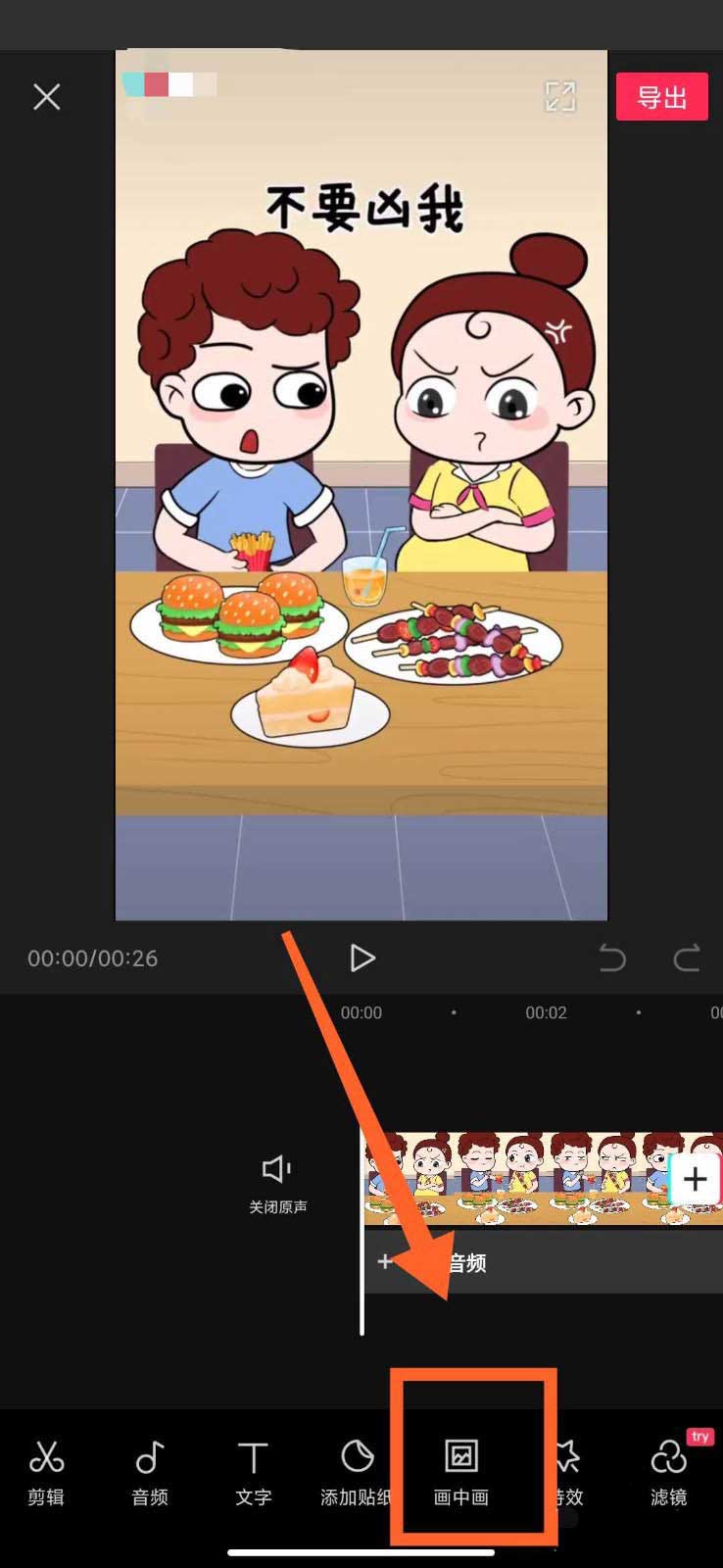 5、重新添加原视频,点击【画中画】,如图5