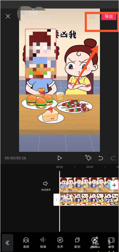 4、自己拖动马赛克的边框调整长度,将视频导出。如图4