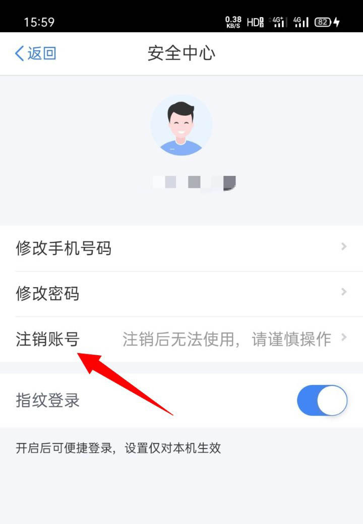 4、进入后,我们在安全中心页面中,点击【注销账号】。