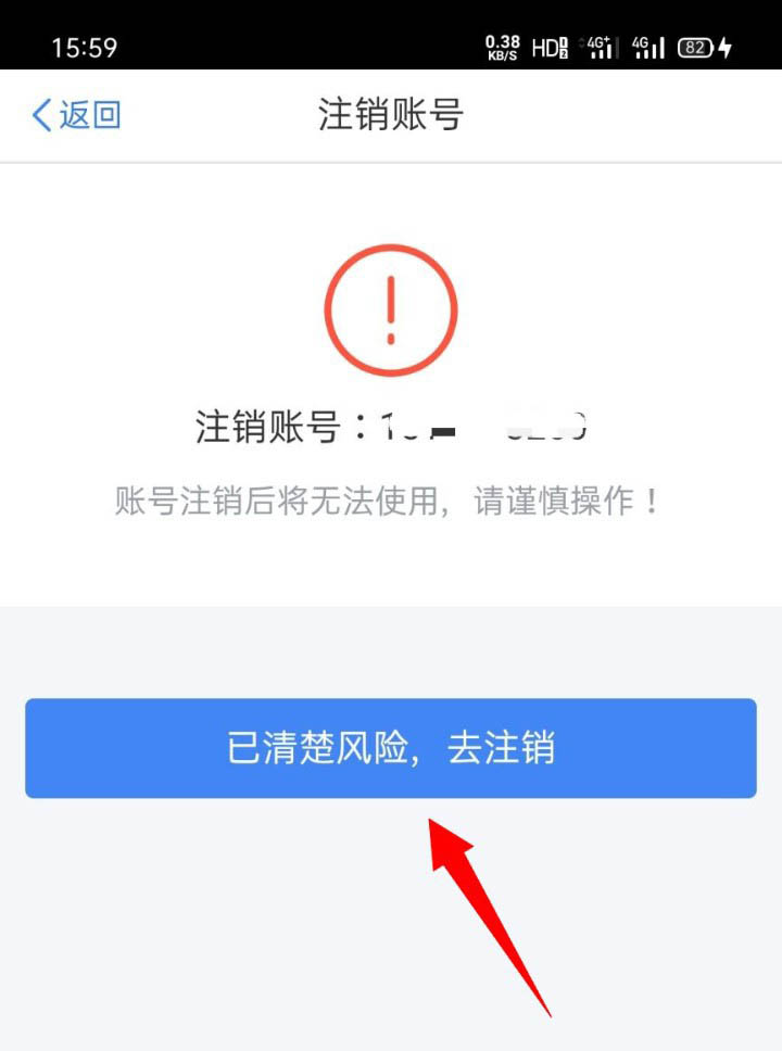 5、之后,如若我们已经清楚注销风险,则在注销账号页面中点击【已清楚风险,去注销】。