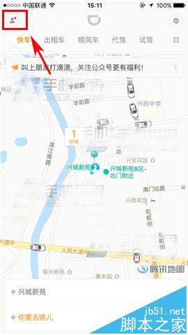 1)首先我们先打开【滴滴出行】,打开后点击左上角的【人像】。(如下图)