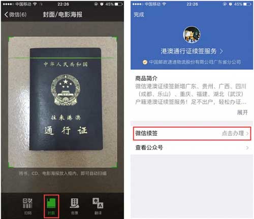 微信方面表示,微信办护照、续签港澳通行证等业务早已开通,但是不能异地续签签港澳证困扰了不少用户,一般来说,各省市的出入境管理部门都只受理该省市范围内的港澳再签,而邮政速递通过借力微信平台,打破了这个限制,实现了跨省市的代办,让不在户籍地的用户享受足不出户,轻松办证的便利。