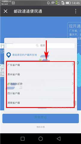 3、紧接着点击【开始签证】,选择户籍所在地;(如下图)