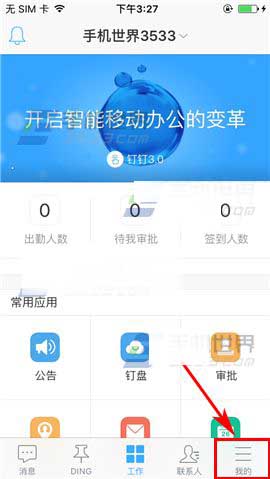 1)点开钉钉,首先进入主界面中的【我的】,接着点击个人用户;(如下图)
