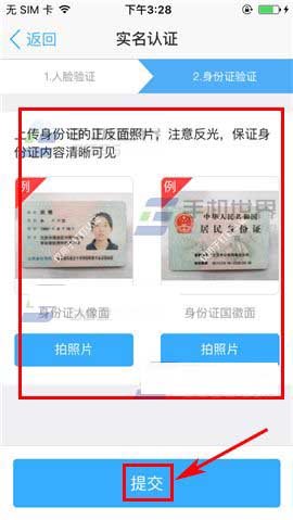 3)最后通过人脸认证后,再进行身份证正反面认证,点击【提交】便可。(如下图)