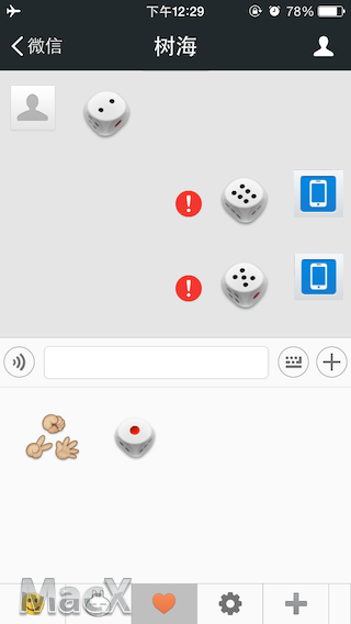 那么第二种,断网重发怎么作弊呢?就是当对方发出一个划拳之后,你立马断开Wifi,置于飞行模式,然后快速给他发骰子,这时因为网络中断未能发送出去的,出现一个红色的感叹号。当你投出自己想筛子点数时,就重新联网,点这个红色的叹号重发给他就可以了,猜拳也是一样。