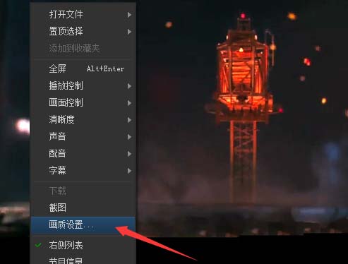 2、在播放器的界面当中,右键操作弹出了下拉菜单选中为画质设置的选项。