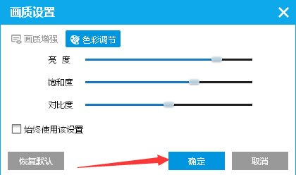 3、就会弹出了一个画质设置的窗口当中,勾选上色彩调节的选项。