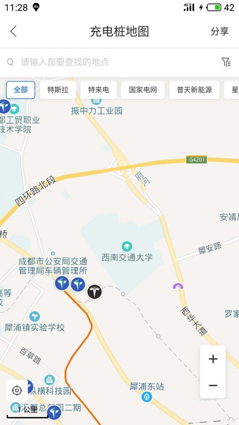 4、点击后,就可以查询到附近的充电桩了。