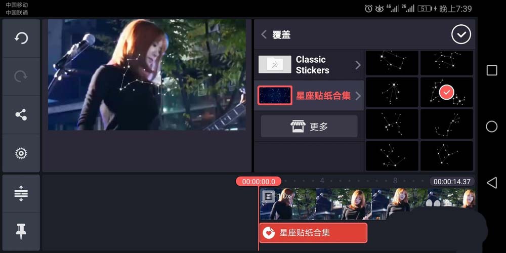 2、执行层-覆盖命令,从中选择星座贴纸合集,并选择一种样式。